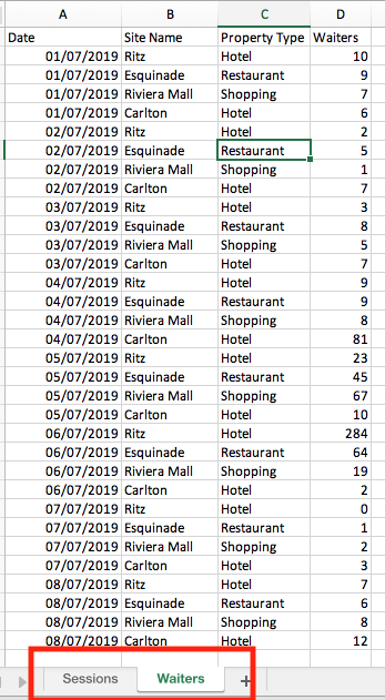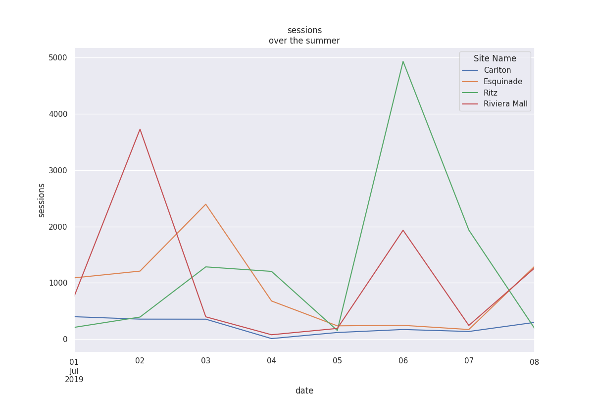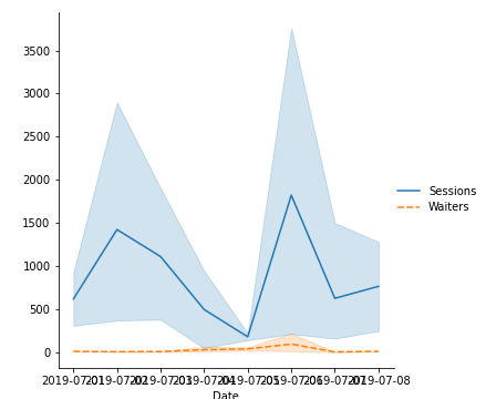 A. visualiser les deux données (Sessions et Waiters) en fonction du temps par site